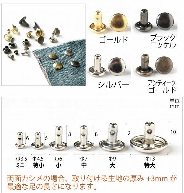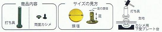 両面カシメ 中 材質:頭:真鍮 足:鉄真鍮