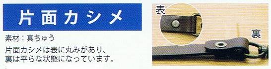 カシメの足の長さより3mm引いた厚みが目安になります。