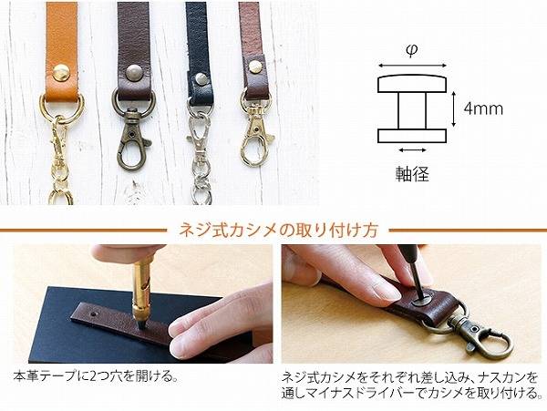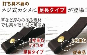 打ち具が要らず、マイナスドライバーで取り付けられるネジ式です。