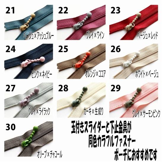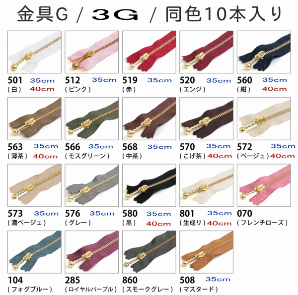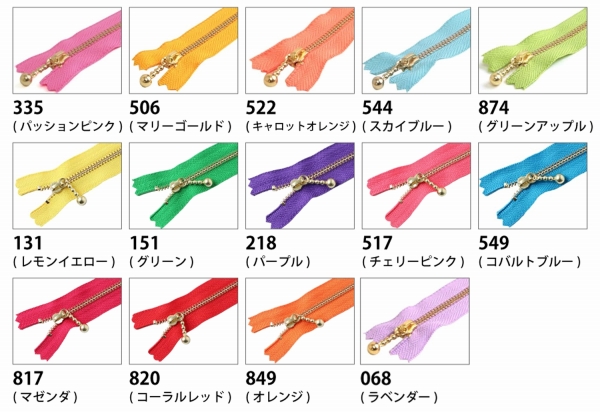 玉付きバッグ用ファスナー 3G 色見本