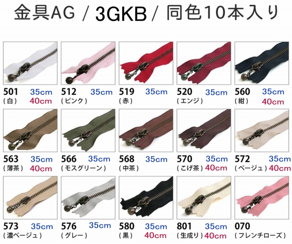 玉付きバッグ用ファスナー 3GKB 色見本