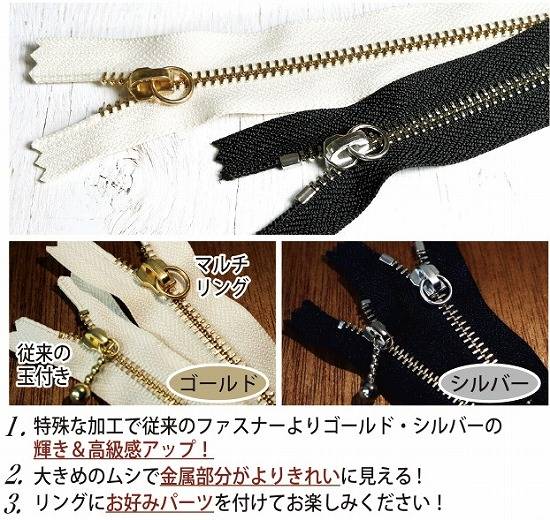 リングにお好みのパーツを付けてお楽しみいただけるファスナーです。