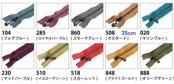 ファスナーの引き上げ金具は現在画像のような玉が繋いだような金具と鎖状の金具の2種類があります。当方で扱っているファスナー金具は入荷時期によってどちらが入荷するか決まっていませんのでご了承ください。また、金具の種類は指定できません。 |