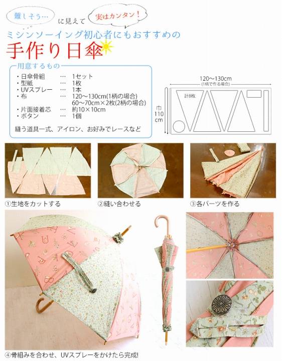 アイロンで接着し、帽子や日傘・アームウォーマー・ストールなどにおすすめです。