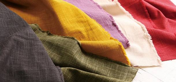 ひとつの柄の中に綾織り部分とざっくりしたからみ織の部分を繰り返すことでナチュラルな