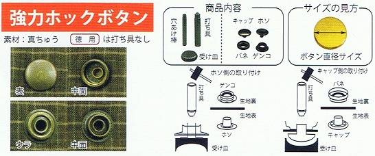 強力ホックボタン15mm 打ち具付き 6組入り 1袋 ¥560