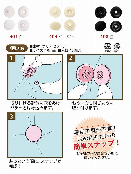 大きくしっかり止められるに軽いおしゃれなスナップ釦